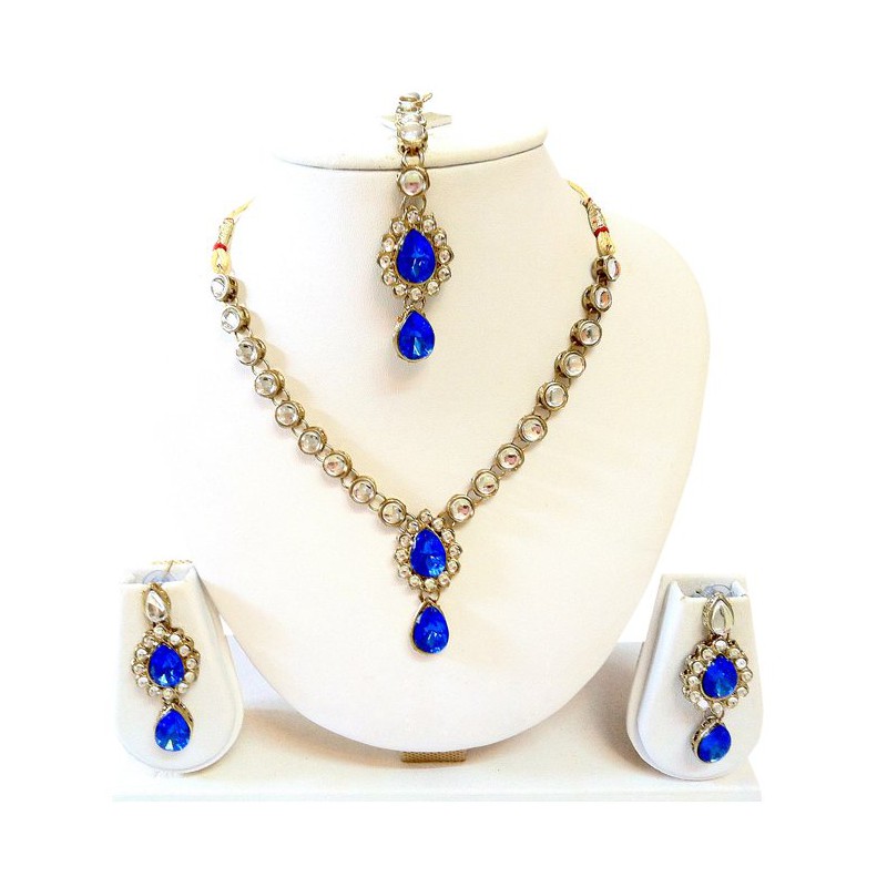 Apsara Plush Royal Blue Necklace Set With Maang Tika